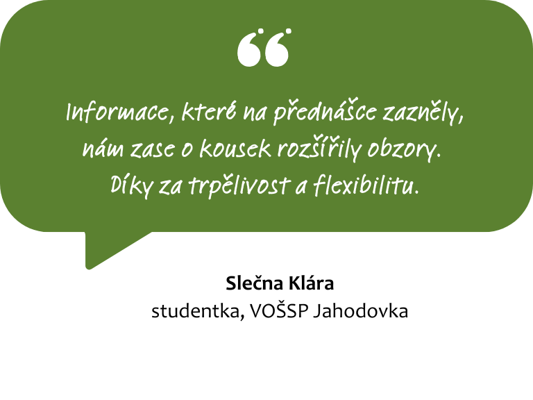 Začínáme nabízet 1-2denní stáže a besedy zaměřené na naši činnost, osobní asistenci a život s tělesným postižením. Naše zkušenosti získané od roku 1992 budeme rádi předávat dál a sdílet s těmi, kdo mají zájem o práci v sociálních službách a kteří chtějí získat praktický vhled do této oblasti. V současnosti hledáme partnery a zájemce o pravidelnou spolupráci, např. školy se sociálním zaměřením nebo další organizace v sociální oblasti. Rádi se uvidíme s těmi, kteří sdílí náš zájem o podporu lidí s tělesným postižením.